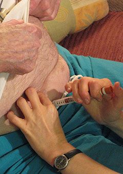 Durch die enge Zusammenarbeit von Fachpflegepersonal und Fachärzten stellen wir eine intensivmedizinische Versorgung zu Hause sicher. Dazu gehören u. a. Beatmung, Portpflege und der fachliche Umgang mit einem zentralen Venenkatheter.